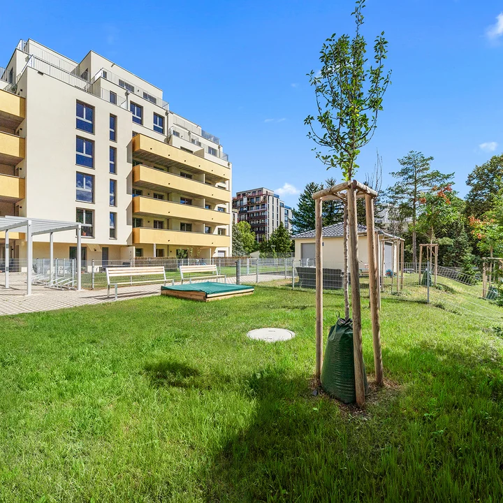 Wohlfühlen schreibt man im Kult23 groß – auch außerhalb des eigenen Apartments. Das Projekt besticht mit seinem Mix aus Gemeinschaftsflächen und Rückzugsorten, aus Natur und Lifestyle. Der Gemeinschaftsgarten mit kleinem Spielplatz fördert den sozialen Austausch untereinander. Auf eigenem Balkon, Terrasse oder im Garten haben Bewohnerinnen und Bewohner auch einen privaten Rückzugsort im Freien. Für den Kult-Faktor sorgt ein separates Atelier für Kunstschaffenden, das ebenfalls erworben werden kann.
